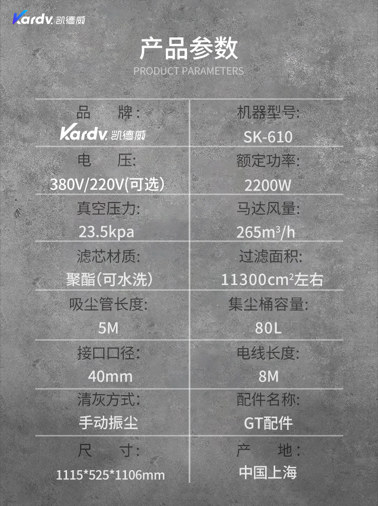 SK-610是一款自主研發(fā)的工業(yè)吸塵器。采用工業(yè)設(shè)計(jì)風(fēng)格,做工好,美觀大氣,黑灰色調(diào)搭配彰顯本機(jī)的工業(yè)風(fēng)格。電控系統(tǒng)采用簡(jiǎn)單易操作的按鍵式控制系統(tǒng),有防缺相,漏電,過(guò)載的保護(hù)。動(dòng)力源采用凱德威FY2.2定制主機(jī),主機(jī)葉片以及外殼為合金材料壓鑄成型,再經(jīng)過(guò)整體拋光噴涂,相對(duì)控制了整機(jī)的熱脹冷縮,風(fēng)量穩(wěn)定,并選用了質(zhì)量穩(wěn)定的軸承。