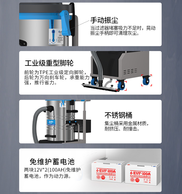 DL-2060D凱德威電瓶式吸塵器是我司的一款充電式工業(yè)吸塵器,摒棄了常規(guī)拖線式吸塵器使用范圍的局限性,此款吸塵器利用蓄電池做為電源啟動。適用于紡織、醫(yī)藥、電子、食品加工、機械制造、造紙、陶瓷、等需要大面積清理而不想受限于電源線限制的場所。具體請咨詢銷售人員。