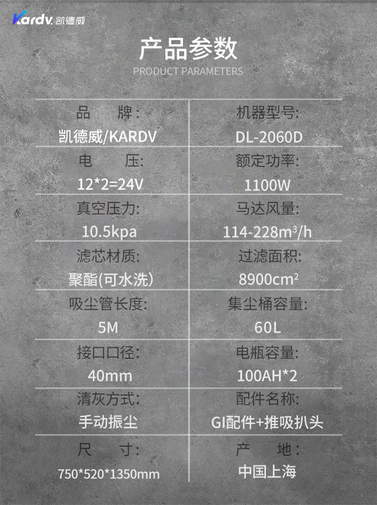 凱德威電瓶式DL-2060D吸塵器