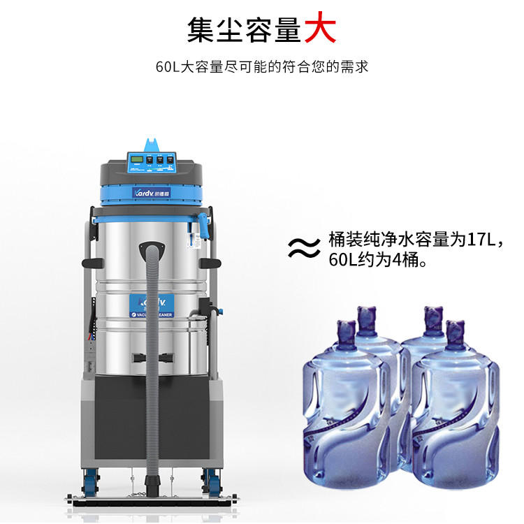DL-3060D凱德威電瓶式吸塵器是我司的一款充電式工業(yè)吸塵器,摒棄了常規(guī)拖線式吸塵器使用范圍的局限性。此款吸塵器利用鋰電池組做為電力源,不需外接電源,操作簡(jiǎn)單方便。機(jī)器除常規(guī)手持式吸塵外,裝置有60cm寬可推吸扒頭,可以邊推邊吸