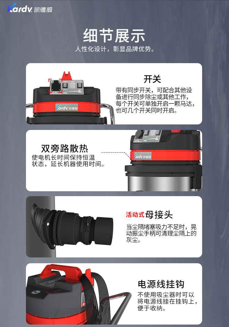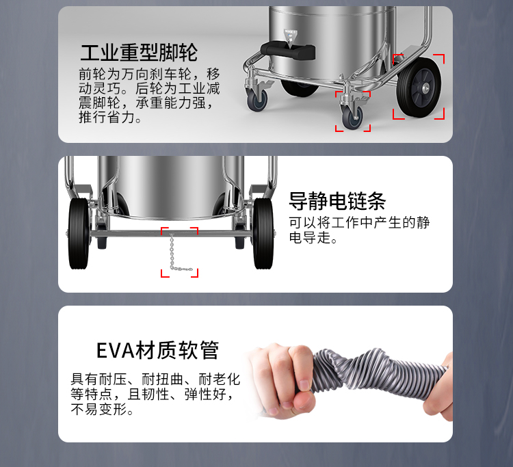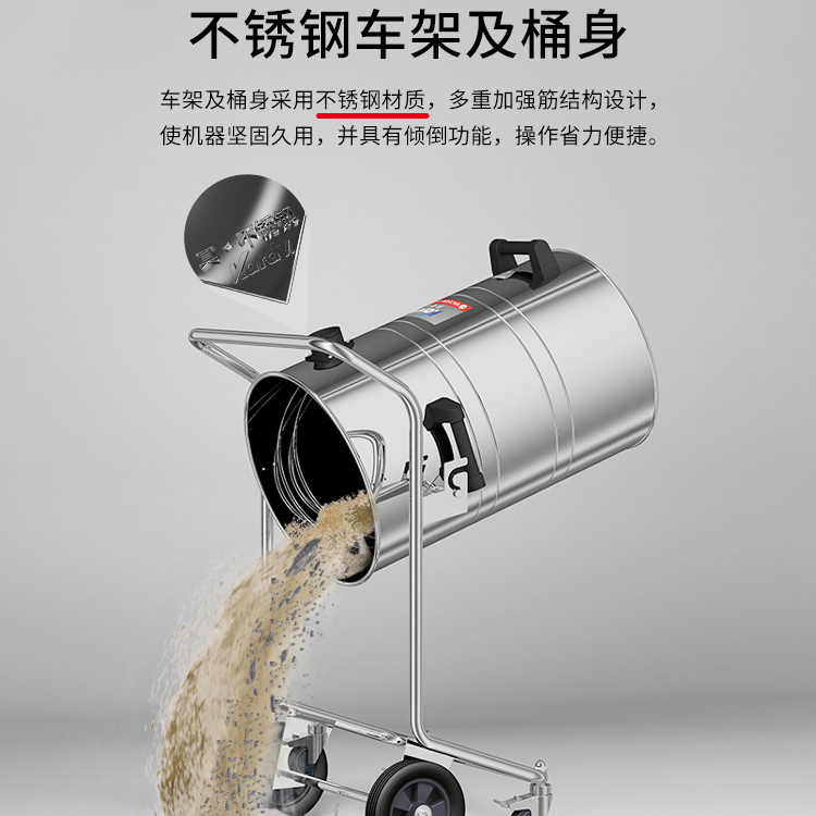 GS-2078B是一款工業(yè)型吸塵器,集塵桶為80L,為不銹鋼材質(zhì),配有不銹鋼車架,在移動時輕巧方便;可以用在工廠、倉庫或建筑工地等場所清理灰塵等,在商業(yè)環(huán)境中也可以使用。