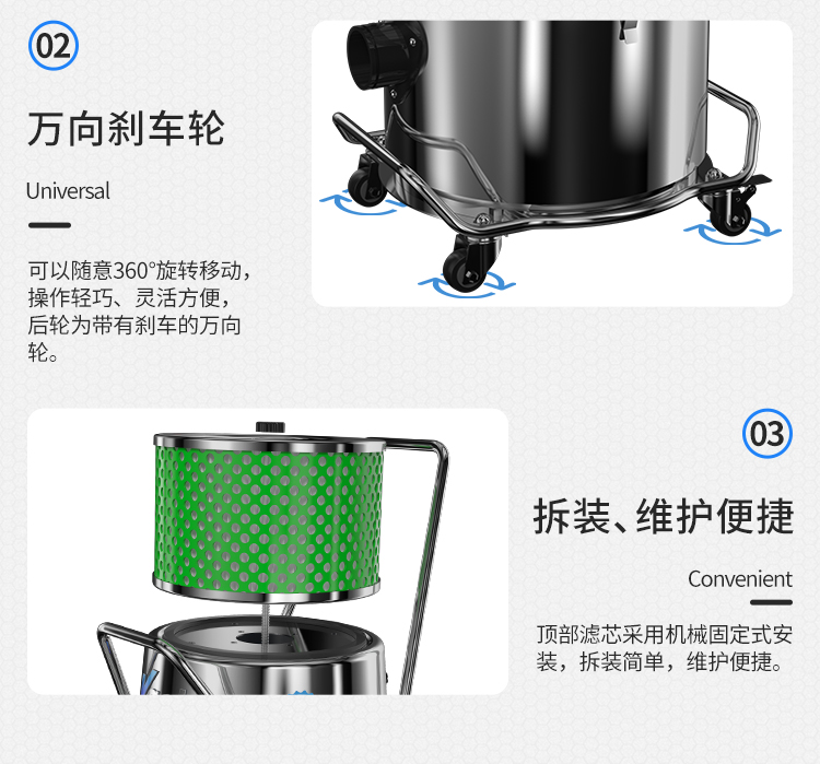SK-1220B是由上海樂容(專利號:ZL201930663101.0)自主設(shè)計、研發(fā)、生產(chǎn)的一款適用于Class100潔凈車間清潔使用的吸塵器。機器采用白鋼材質(zhì),堅固耐用,外觀新穎大方。電力源采用1200W電子無刷免維護(hù)馬達(dá)并配合無級變速電控系統(tǒng),吸力大小自由調(diào)節(jié)。過濾系統(tǒng)采用東麗覆膜濾材,總過濾面積12000cm2。主要適用于半導(dǎo)體、液晶、LED、精密電子器件、科研、醫(yī)藥、食品工業(yè)等各種潔凈車間。