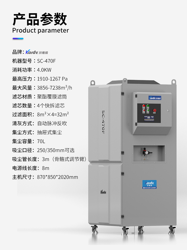 凱德威工業(yè)除塵器SC-470,工廠車間用??蓞⒖紝?shí)用場所:化工制藥,食品加工,冶金、鑄造、機(jī)械加工、建材等行業(yè)。