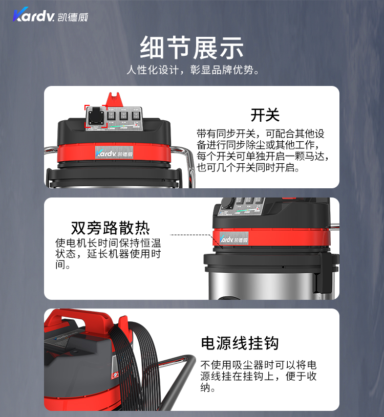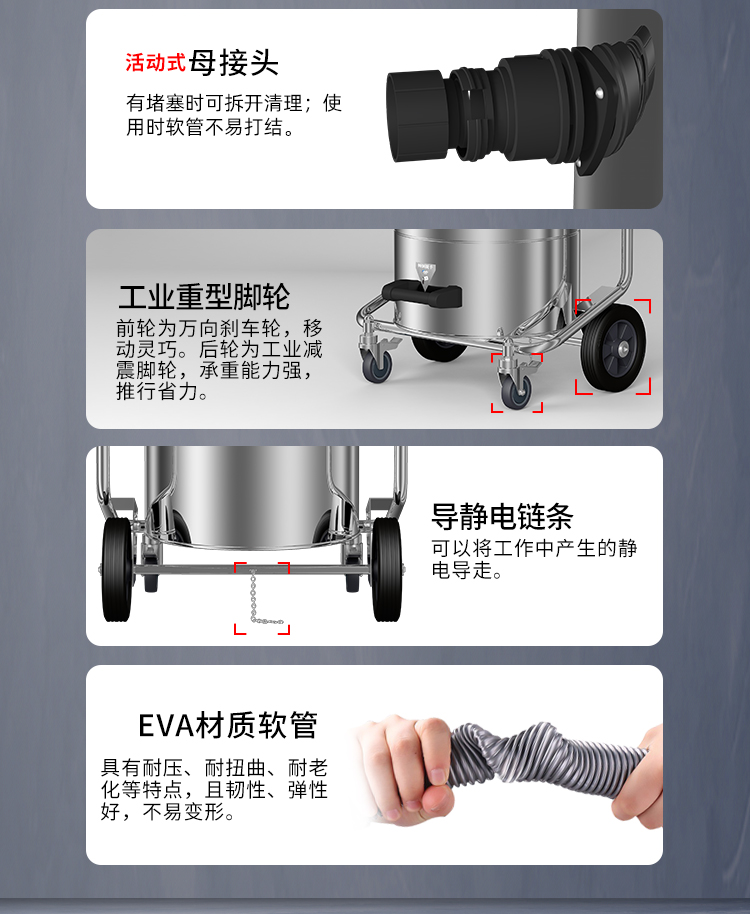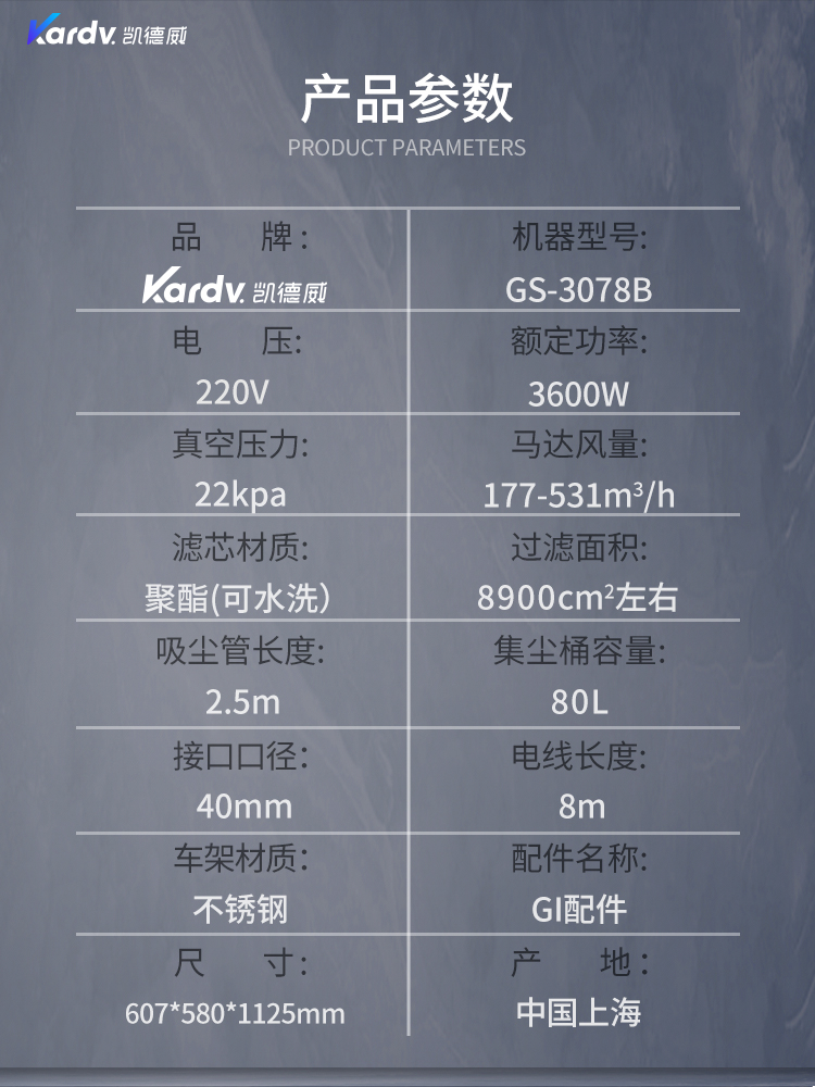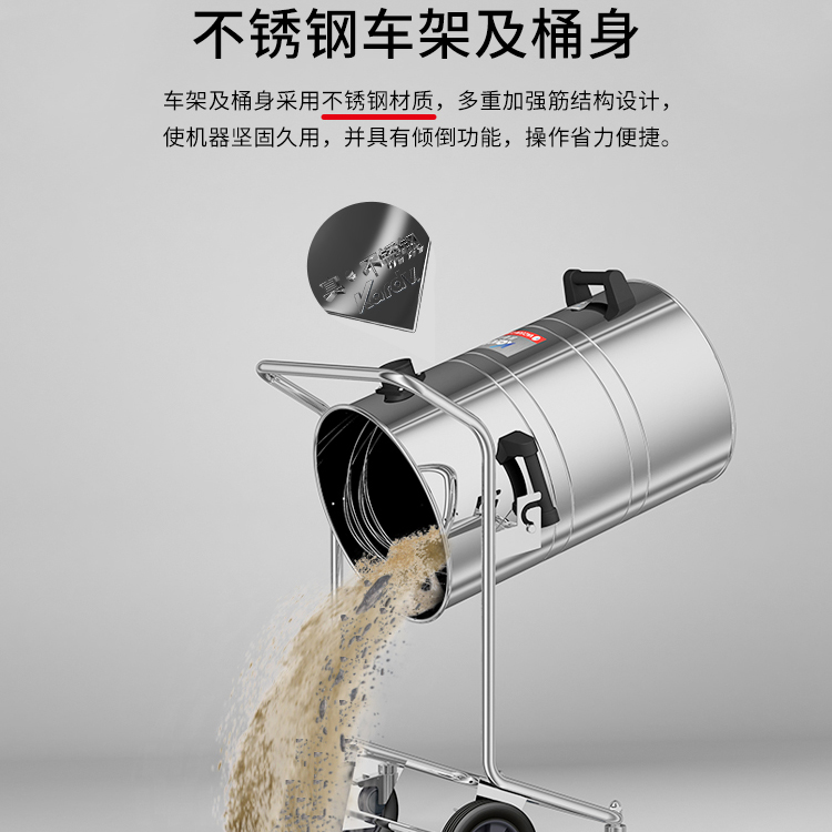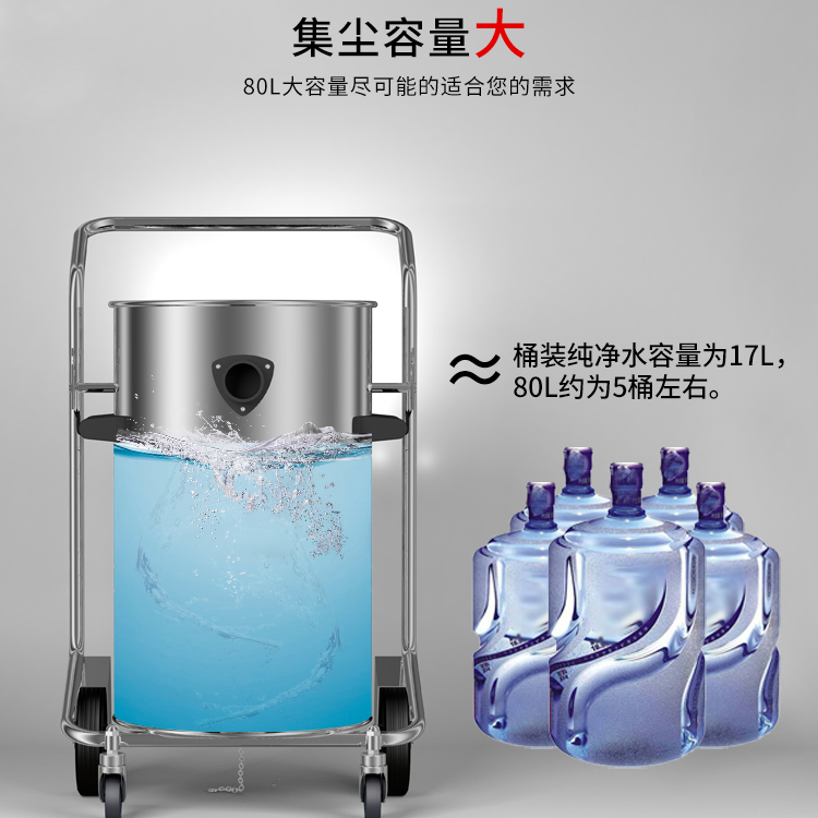 GS-3078B是一款工業(yè)型吸塵器,集塵桶為80L,為不銹鋼材質(zhì),配有不銹鋼車架,在移動(dòng)時(shí)輕巧方便;可以用在工廠、倉庫或建筑工地等場所清理灰塵等,在商業(yè)環(huán)境中也可以使用。