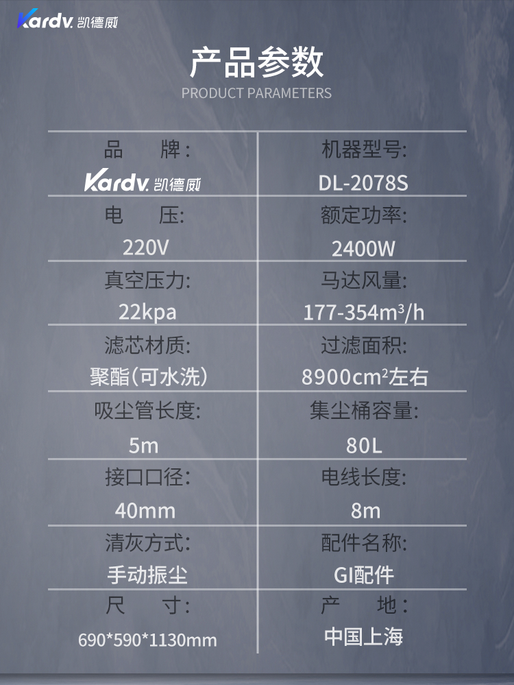 DL-2078S是一款工商業(yè)吸塵器,有2顆馬達(dá),可單獨或聯(lián)合開啟;集塵桶為80L,為不銹鋼材質(zhì),配有車架,在移動時輕巧方便,車架底座為PP材質(zhì),底座上有置物格,可放置配件或工具方便收納和使用;配有手動晃動振塵,在使用的過程中,左右晃動振塵手柄就可以起到清理過濾器的作用;可以用在工廠、倉庫或建筑工地等場所清理灰塵等,在商業(yè)環(huán)境中也可以使用。