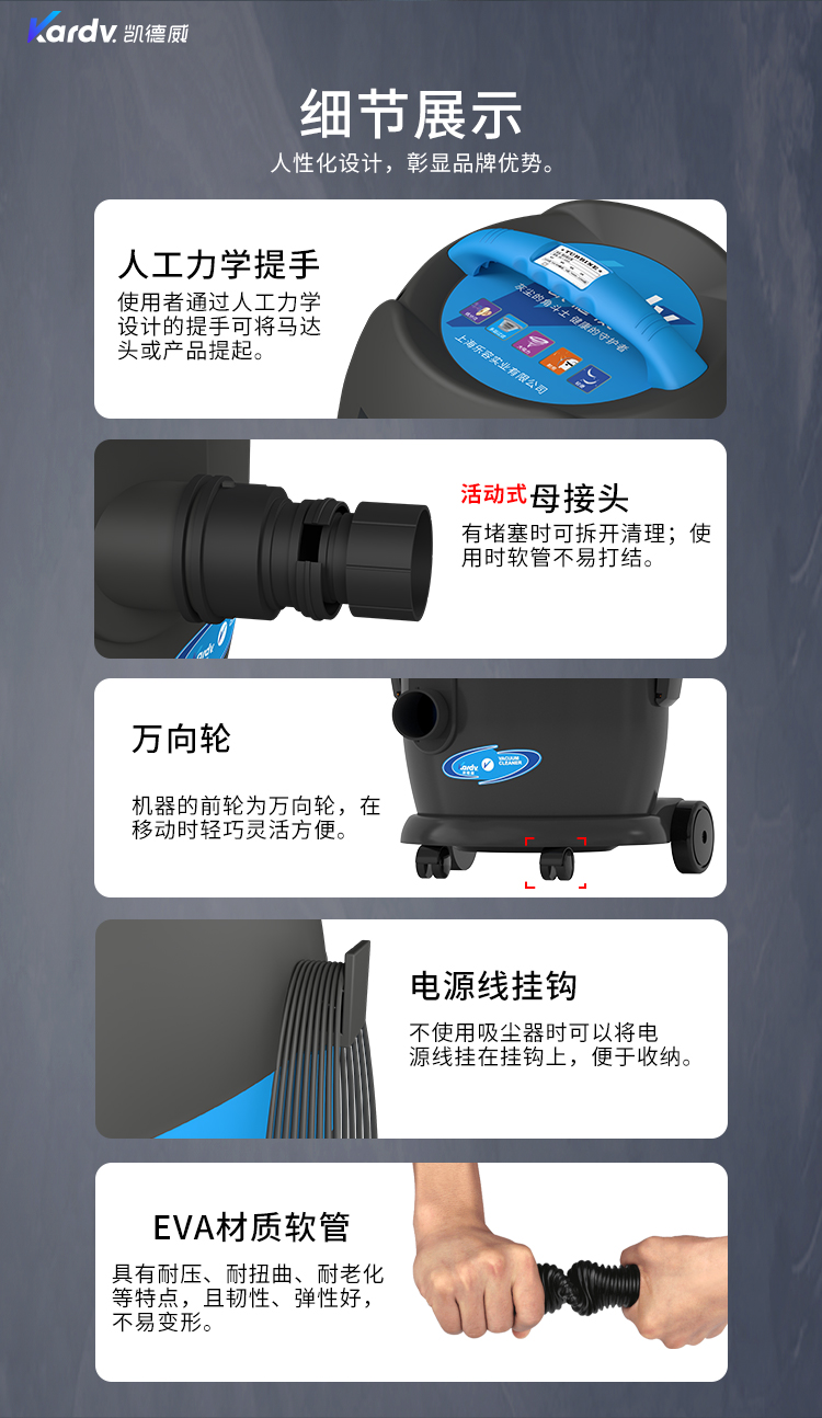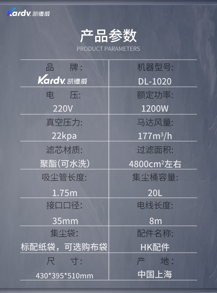 DL-1020是一款干濕兩用型吸塵器,集塵桶為20L;散熱上采用上下氣道分離設(shè)計;配有置物架,可以防止工具和配件,方便使用;可以用在倉庫、廠房等;也可與其它產(chǎn)品配套使用,也可用作將廢料收集;也可使用在普通的商業(yè)、企業(yè)環(huán)境,比如一般的辦公室、客房等。